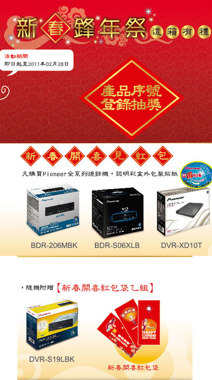即日起至2/28止先鋒牌將對消費者舉行序號登錄抽獎活動