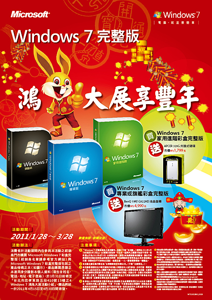 Windows 7彩盒完整版鴻兔大展新春促銷活動