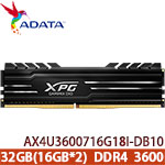 ADATA威剛 XPG GAMMIX D10 32GB(16G*2) DDR4 3600 雙通道 AX4U3600716G18I-DB10 黑色散熱片(客訂) |